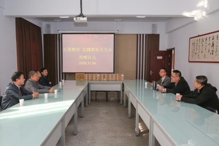 这些书籍对于我院书法专业的发展将起到重要的推动作用。苏佩生书记代表美术学院向齐先生父子对大同大学发展的关心和帮助表示衷心的感谢。同时,也发出邀请,希望像齐先生这样的有识之士能多来大同大学,来大同大学美术学院交流指导工作。杨州院长代表美术学院向齐先生颁发捐赠证书并合影留念。
