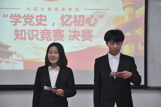 4月28日下午,大同大学美术学院在逸夫美术楼A601举行了“学党史,忆初心”知识竞赛决赛。学院党委副书记宋睿媛,团委书记刘欣出席。