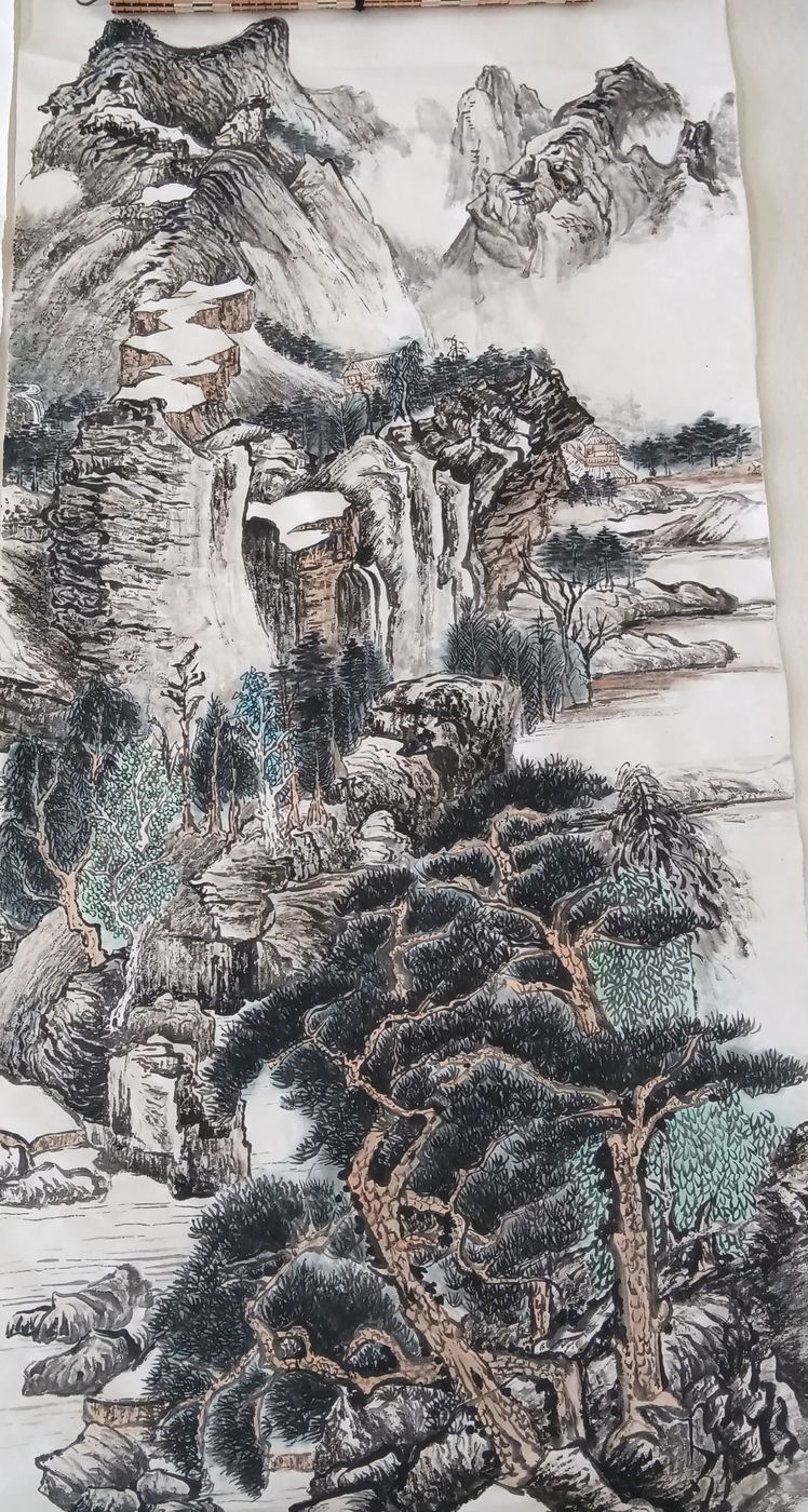 刚开始学习现代山水画,总感觉很难从古代山水画中过度过来,慢慢的在老师的指导下,有了一定的进步。画画一定要多读,多看,多画。看他们是怎样用笔的,怎样用墨的,怎样画树石烟云的,怎样布局的等。一幅好的山水画意境是很高的,而意境是中国绘画发展中特有的一个美学观念,是山水画艺术表现的审美核心,也是构成艺术审美不可或缺的重要因素。