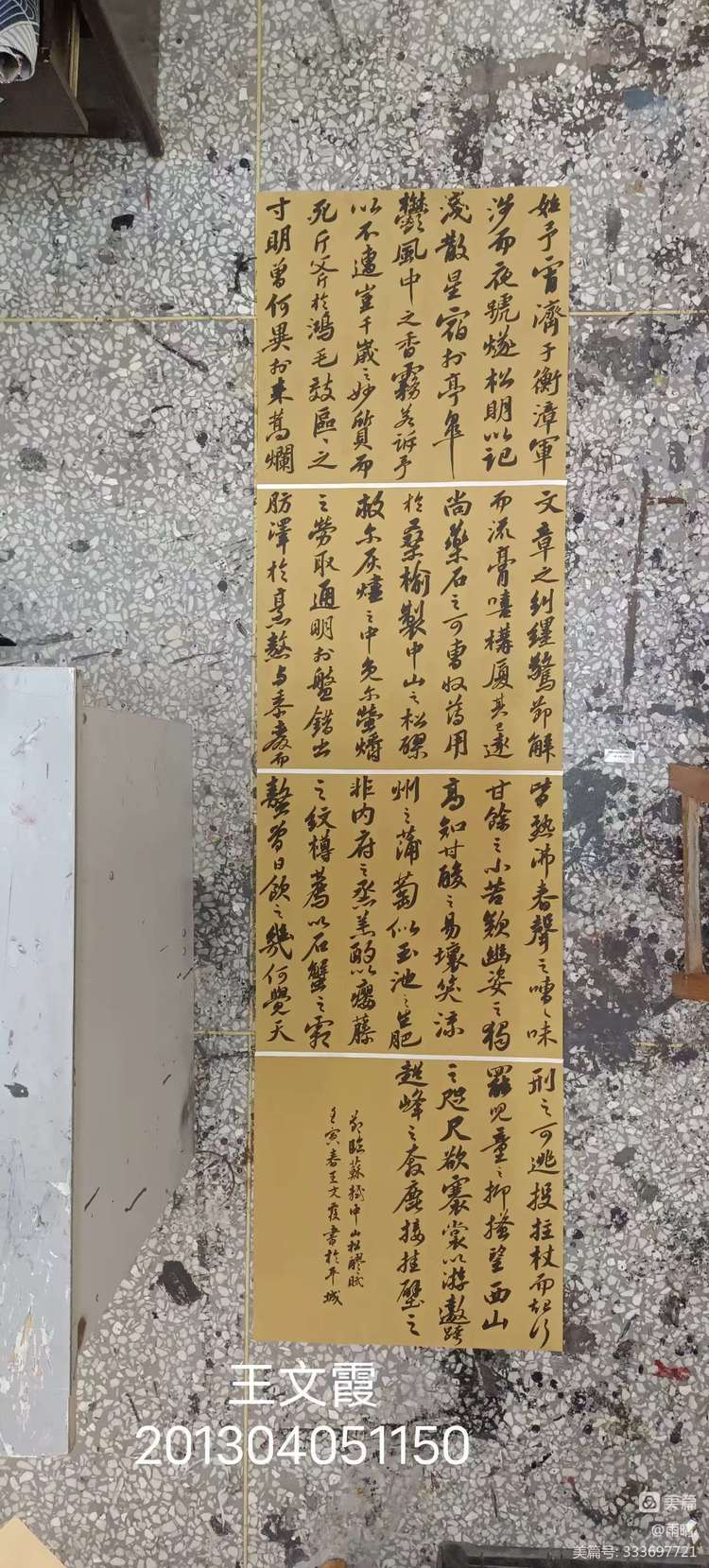 在临摹中尽量不打破原帖的章法进行临摹,在对书谱有一定的了解和掌握之后,开始集字创作,没有的字便找出这个字的偏旁在书谱中的书写情况,完成集字才是对章法的推敲也发现自己创作过程中的很多问题,比如章法不完整气息不连贯、笔法、字势,创作仍需不断的改进,这个阶段,更需要以专业为主,不断的学习。