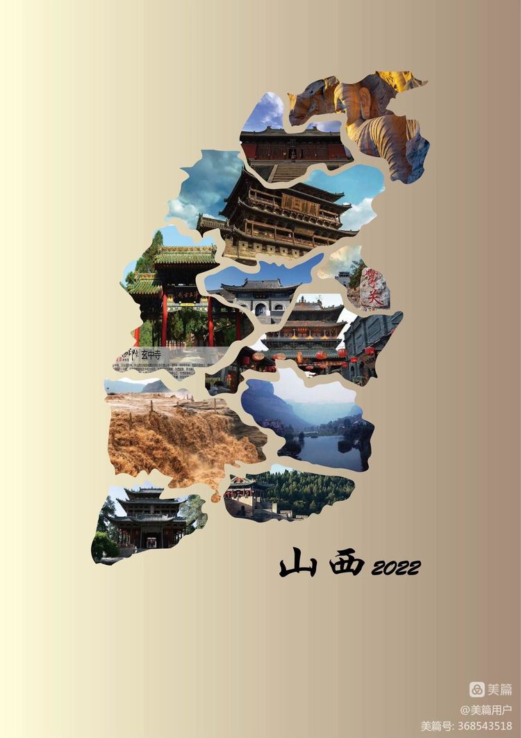 创作理念:以山西地图作为创作的素材,将各个地区有代表性的地区或景区拼出山西地图,直白的展示出山西美丽的一面给大众。